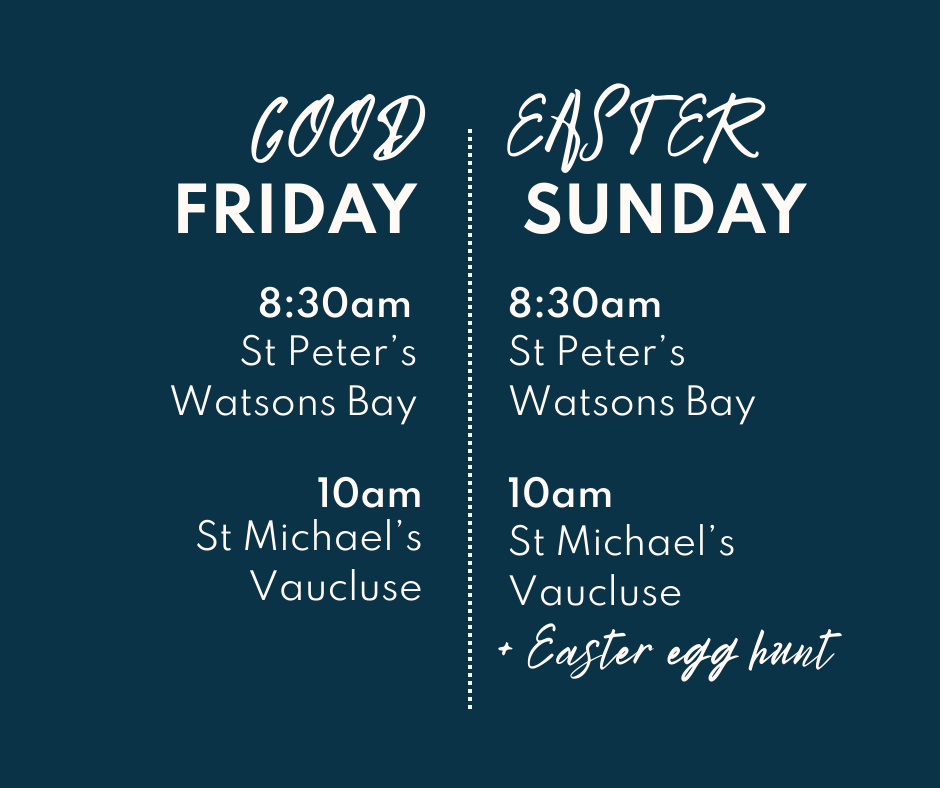 Our Easter Sunday services will be followed by a morning tea of hot cross buns, and St Michael’s will be holding a magnificent Easter egg hunt for little ones.